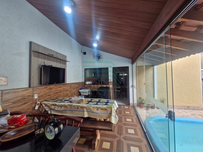 CASA COM 2 DORMITORIOS, SALA ESTAR, SALA TV, COZINHA, WC SOCIAL ( COM BOX BLKINDEX), VARANDA, AREA DE SERVIÇO, WC EMPREGADA, QUINTAL, AREA DE LAZER, CHURRASQUEIRA, FOGÃO A LENHA, PISCINA, ACABAMENTOP DE PISO FRIO, VENTILADORES, PORTÃO ELETRONICO E GARAGEM PARA 2 CARROS ( COBERTA).